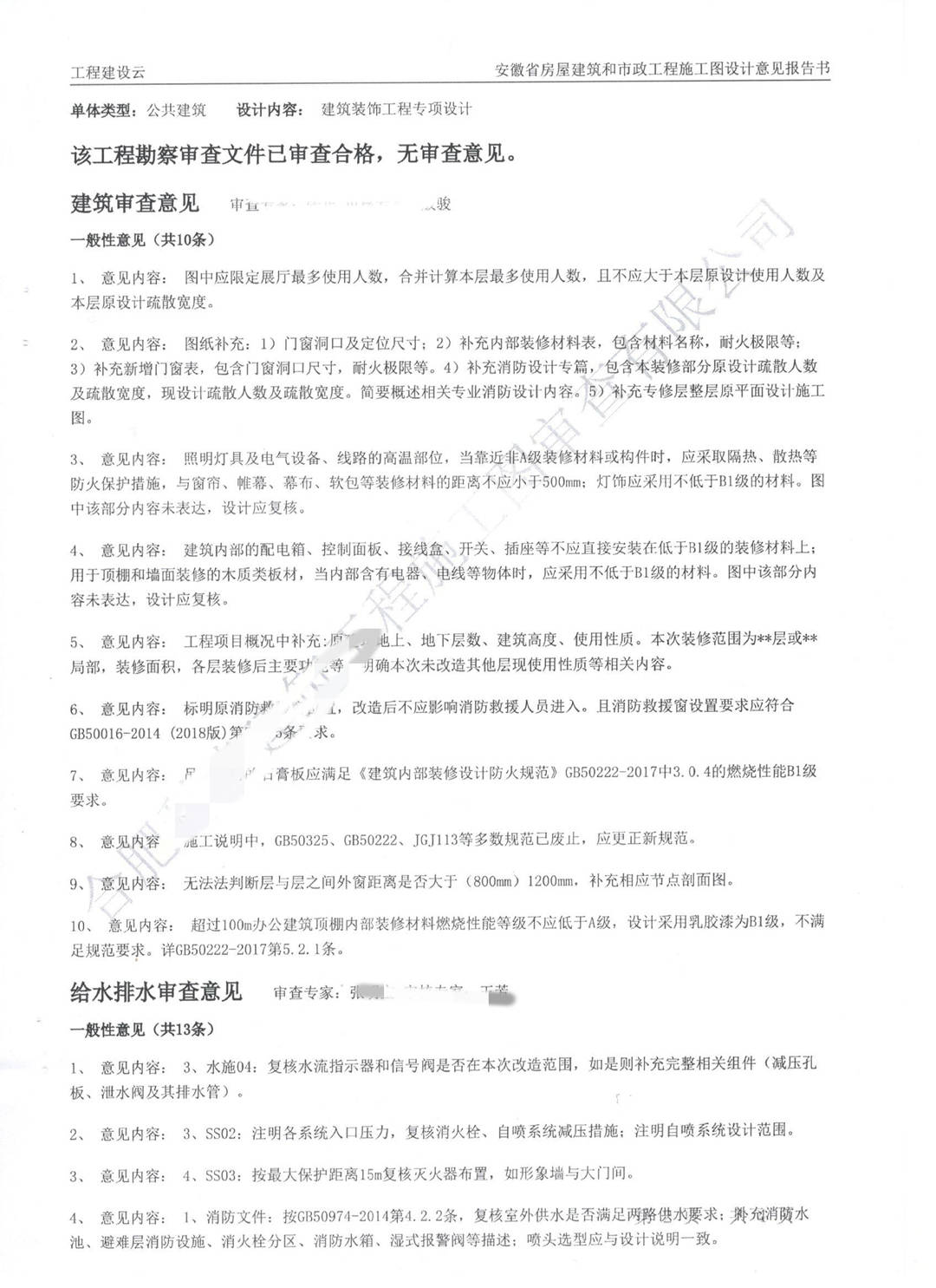 展厅施工图审查意见书-焦作市佳居施工图审查有限公司